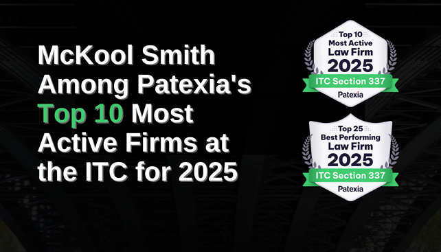 McKool Smith has been recognized as one of the top PTAB firms in Patexia's 2025 PTAB Intelligence Report, providing an all-inclusive report that ranks law firms ...