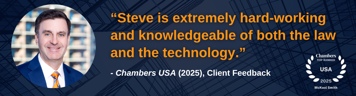 McKool Smith Principal Steve Pollinger is a nationally recognized trial lawyer and registered patent attorney with more than 30 years of experience in high-stakes intellectual property litigation. With a deep track record of courtroom wins across software, electronics, and medical device technologies, Steve has been consistently honored by leading legal publications for his excellence in patent and IP litigation.