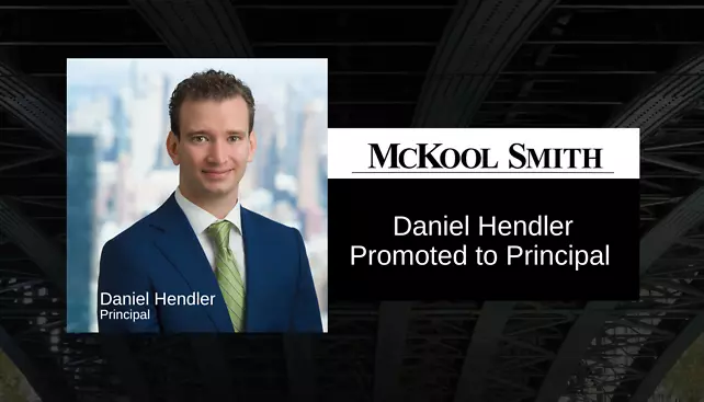McKool Smith is pleased to announce the promotion of Daniel Hendler to Principal in the firm’s New York office, effective January 1, 2025.