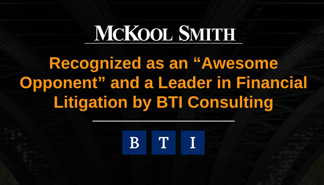 McKool Smith secured a significant patent defense verdict on behalf of T-Mobile in a dispute against Daingean Technologies, an Ireland-based non-practicing entity that ...