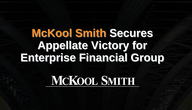 On December 31, 2024, the Texas Court of Appeals for the Fifth District upheld a jury verdict secured by McKool Smith on behalf of Enterprise Financial Group in a contract ...