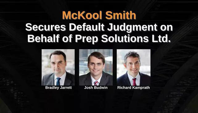 McKool Smith has secured a $3.8 million default judgment on behalf of Prep Solutions Ltd. against seven defendants, with the Court finding that the defendants willfully ...