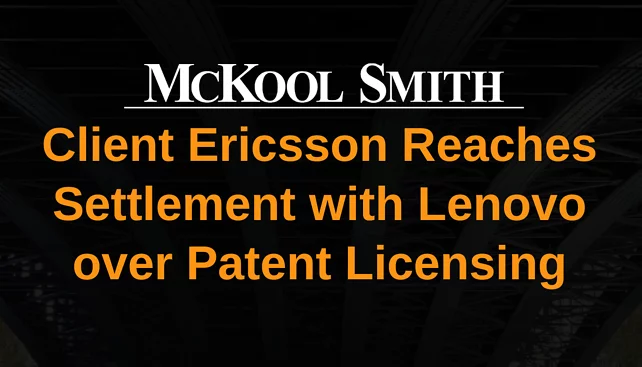 McKool Smith’s client Ericsson has successfully reached a confidential settlement with Lenovo to partially resolve their patent licensing dispute over a multi-year ...